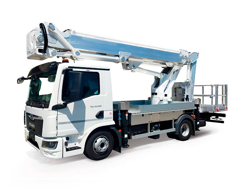 Multitel, azienda italiana fondata nel 1911, si distingue per le sue soluzioni montate su camion, con altezze di lavoro fino a 77,5 m e servizi globali.